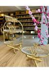 İki katmanlı tasarımı sayesinde hem tekli hem de çift kişilik servisler için uygun olan gold renkli cam sunumluk setimiz, klasik ve şık bir görünüm sunar.