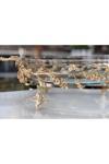 Azade Home Gold Pirinç Japongül Dalgalı Dikdörtgen Borcam Cam Sunumluk