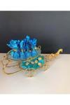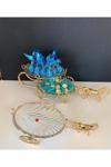 Azade Home Gold Pirinç Atlı İki Katlı Cam Sunum Ve Atlı Tekli Cam Sunum