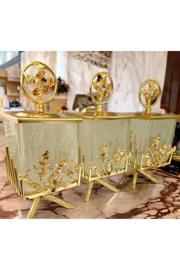 Azade Home Gold Pirinç Japongül Ayaklı Lüx Kristal Kavanoz 3’Lü Set - Image 1
