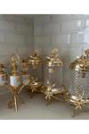 Azade Home Gold Pirinç Japongül Ayaklı Lüx Kristal 3’Lü Kavanoz Ve Zikzak 6’Lı Porselen Baharatlık 2’Li Set