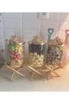 Azade Home Gümüş Tomurcuk Çiçek Pirinç Ayaklı Lüx Kavanoz 3’Lü Set