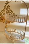 Azade Home Gold Pirinç Atlı İki Katlı Cam Sunum Ve Atlı Tekli Cam Sunum İkili Set