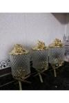 Azade Home Gold Pirinç Japongül Ayaklı Lüx Kristal Cam Kavanoz 3’Lü Set