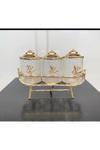 Şık ve modern tasarımıyla mutfaklarınıza estetik bir dokunuş katan cam baharatlık, çok çiçekli pirinç detaylarıyla zenginleştirilmiştir