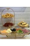 Azade Home Gold Pirinç Japongül Tek Katlı Kahvaltılık , İki Katlı Cam Sunum Ve Tekli Cam Sunun 3’Lü Set
