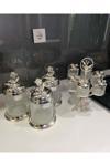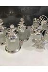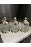 Azade Home Gümüş Pirinç Japongül Ayaksız Lüx 3’Lü Kavanoz Ve Midi Zikzak 6’Lı Cam Baharatlık İkili Set