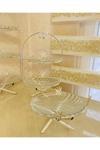 Azade Home Gümüş Pirinç Japongül Üç Katlı Cam Sunum, İki Katlı Cam Sunum Ve Tekli Cam Sunum 3’Lü Set