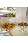 İki katmanlı tasarımı sayesinde hem tekli hem de çift kişilik servisler için uygun olan gold renkli cam sunumluk setimiz, klasik ve şık bir görünüm sunar.
