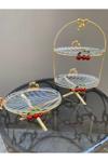 İki katmanlı tasarımı sayesinde hem tekli hem de çift kişilik servisler için uygun olan gold renkli cam sunumluk setimiz, klasik ve şık bir görünüm sunar.