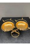 Azade Home Meridyen Kuşlu 3’Lü, Meridyen Kuşlu 2’Li Ve Meridyen Kuşlu Tekli Çerezlik Üçlü Pirinç Set