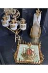 Azade Home Pirinç Japongül Zikzak 6’Lı Porselen Baharatlık ,Çubuk Rulo Ve Çubuk Kare Peçete 3’Lü Set