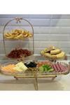 İki katmanlı tasarımı sayesinde hem tekli hem de çift kişilik servisler için uygun olan gold renkli cam sunumluk setimiz, klasik ve şık bir görünüm sunar.