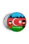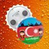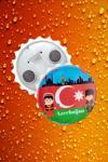 Azerbaycan temalı şişe kapağı şeklinde tasarım magnet ve şişe kapağı açacağıdır.