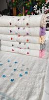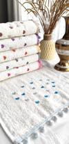 Çeyizlik (6'lı Set) Kalp Nakışlı Ponponlu Bukle Lüks Havlu Seti