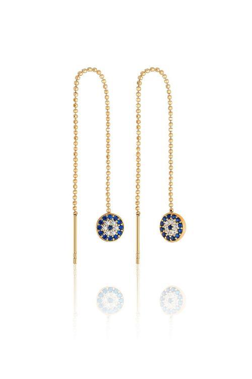 Azuris 925K Gümüş Sıralı Top Zincir Nazar Taşlı Küpe