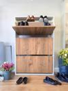 Azzuri Furniture Aylin Düşer 3 Kapaklı 6 Gözlü Beyaz Duvara Monte Edilebilir Ayakkabılık Meşe-Beyaz