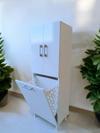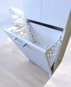 Çamaşır sepetli banyo dolabı modelinin üst kısmında deterjan, sabun ve havlu gibi malzemeleri gizlemek için iki kapaklı bir bölüm bulundururken alt kısmında ise çamaşırların konulabileceği kapaklı sepet yer alır. Böylece banyodaki pek çok malzemenin dağınıklığından aynı model sayesinde kurtulabilirsiniz.