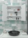 Kapaklı banyo dolabı banyodaki eşyaları düzenli bir şekilde saklamanıza olanak tanır bu sayede banyonuz daha temiz ve düzenli görünecektir.