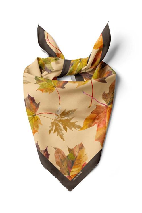 B107 Kadın Yaprak Desenli Bandana 50x50 Yeşil Kahverengi DG0437-22