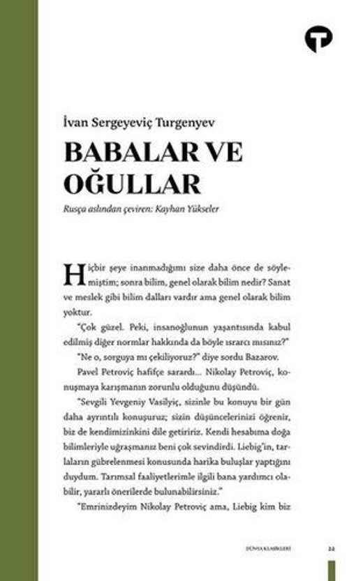 Babalar ve Oğullar, bir itiraz ve sorgulama alanına dönüşür. Turgenyev’in o dönem okuyucusuna vurduğu darbenin kuvveti bugün bile hissedilmekte.