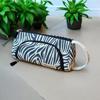 Babun Ilgaz Zebra Desenli Büyük Geniş Organik Kanvas Pamuk Bez Kumaş Kalem Kutusu Kalemlik Makyaj Çanta
