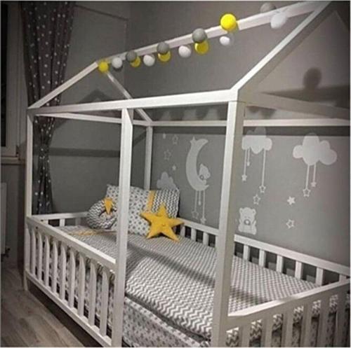 Baby Kinder Unisex Beyaz Çatılı Beyaz Montessori Bebek ve Çocuk Karyolası