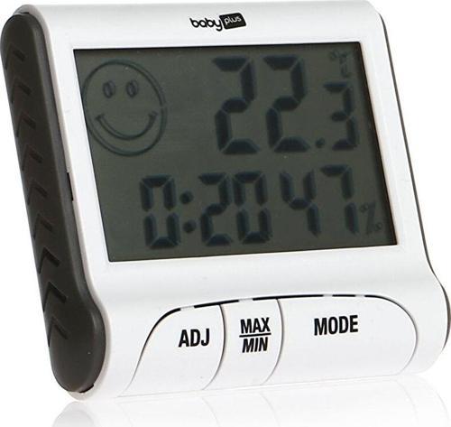 "baby plus Saatli Sıcaklık ve Nem Ölçer, masaüstü kullanımınauygundur. Saat göstergesi bulunmaktadır. Pratik konfor seviyesi göstergesi bulunmaktadır. Günlük alarm fonksiyonuna sahiptir. Minimum ve maksimum sıcaklığı hafızasına kaydedebilir. Güçlü mıknatısları vardır. Ürünün Boyutları: 83 x 75 x 20 mm Ürünün Ağırlığı: 53 g Not: Ürün 1 adet AAA Pil ile çalışır. (Pil paketedahil değildir.)"