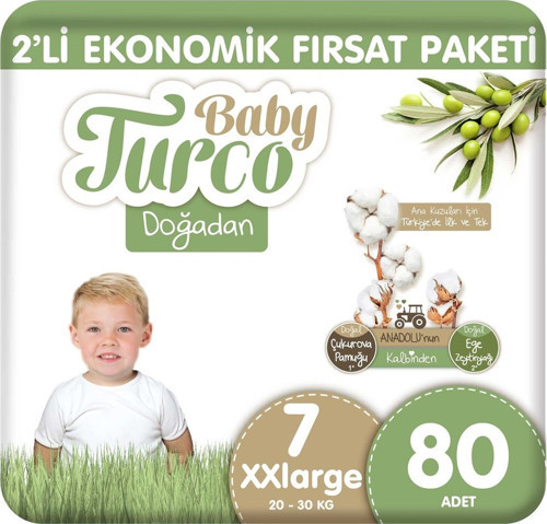 Baby Turco Doğadan 2'li Ekonomik Fırsat Paketi Bebek Bezi 7 Numara Xxlarge 80 Adet