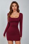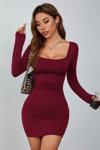 Siyah Kare Yaka Uzun Kollu Likralı Mini Elbise ( Mevsimlik ve Kışlık )