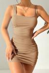 Siyah renk seçeneğiyle her ortama uyum sağlayan askılı fitilli örme kaşkorse elbise, şıklığı ve rahatlığı bir arada sunar.