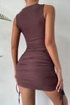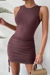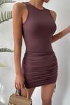 Baby xclub Kadın Kahverengi Kaşkorse Büzgü Detaylı Boyu Ayarlanabilir Vücuda Oturan Mini Elbise