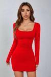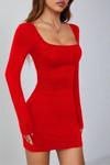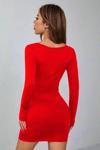 Kırmızı Kare Yaka Uzun Kollu Likralı Mini Elbise ( Mevsimlik Ve Kışlık ) Kırmızı S