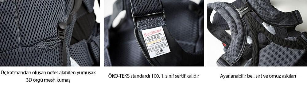 Test & Güvenlik : Babybjörn Move hem Avrupa EN 13209-2:2015 hem de Amerika ASTM F2236 güvenlik standartlarına uygundur.