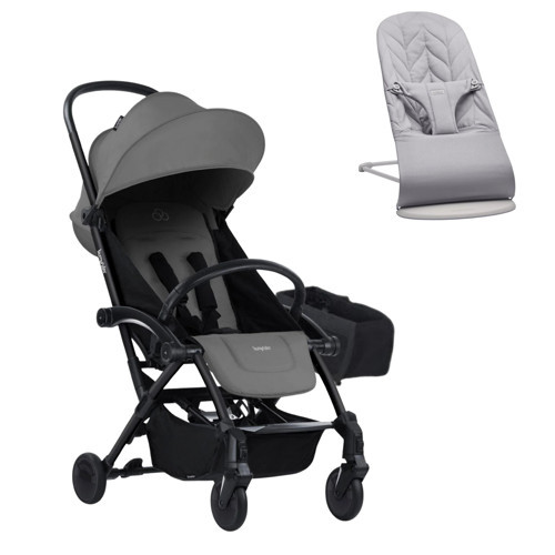 Babybjörn Bliss Ana Kucağı Petal Woven Grey & Bumprider Connect³ Bebek Arabası Black-Grey & Yan Düzenleyici Çanta
