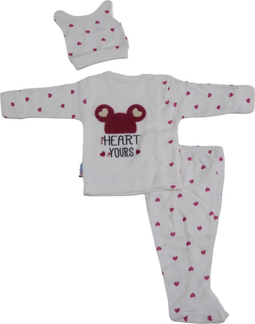 Bebeğinizin cildine nazik dokunuşuyla tasarlanmış, pamuklu materyalden üretilmiş bebek zıbın takımı