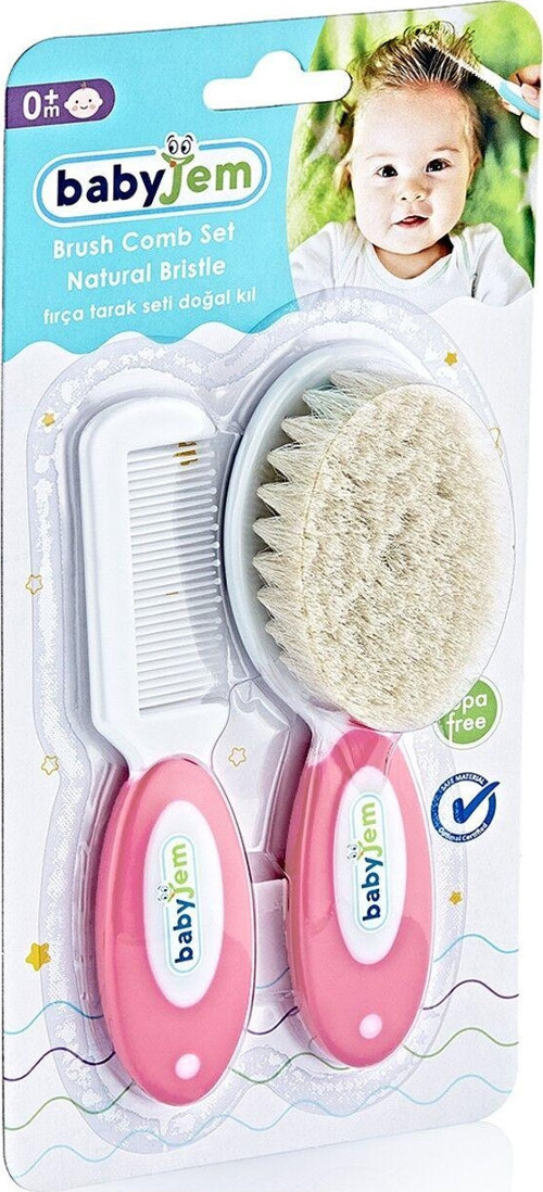 Babyjem yumuşak doğal kıl fırça ve yuvarlak uçlu tarak bebeğinizin saçını nazikçe taramanızı sağlar.