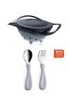 - 360 derece dönebilen, içerisindeki mamayı veya yemeği yere dökmeyen bir tasarıma sahiptir.Kendi başına yemek yemek isteyen bebekler bu ürün sayesinde ortalığı kirletmeden yemeklerini yiyebilirler. Bulaşık makinesinde yıkanabilir. Parlak renkleri sayesinde bebeğinizin dikkatini mama tabağına dolayısı ile yemeğine yöneltir. Kapaklıdır, buzdolabında kapağı kapatılarak saklama kabı gibi kullanılabilir. Babyjem paslanmaz çelik çatal kaşık seti gri. Babyjem paslanmaz çelik çatal seti, çocuklar için özel olarak tasarlanmıştır. Çocuğunuz yemeğini kendi kendine yiyerek bağımsız beslenmeyi öğrenir. Böylelikle gelişimini desteklemeye yardımcı olur. Kaşık derinliği, çocukların porsiyonları düşünülerek tasarlanmıştır. Çatal dişleri çocuğunuzun güvenliği yuvarlak formda tasarlanmıştır, yeterince güvenlidir. Özel tasarımı ile çocuğunuzun eline tam oturur, kaymaz sapları sayesinde elinden düşmez. Bpa ve fitalat içermez.