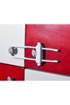 Raylı dolap kilidi tokmaklara ve kapılara uyar ve kilitler.