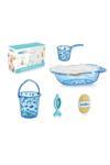 Babyjem Banyo Seti 6 Parça Şık hediyelik kutusunda satışa sunulan babyjem banyo seti içerisinde1 adet giderli şeffaf desenli banyo küveti1 adet şeffaf desenli 10 lt banyo kovası1 adet şeffaf desenli banyo maşrapası1 adet banyo filesi 1 adet lastikli bebek yıkama süngeri1 adet banyo oda termometresi mevcuttur.