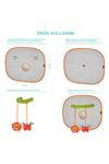 "Bebeğinizin uzun yolda dikkatini çekebileceği sevimli oyuncaklar sayesinde, Bebeğiniz güneş ışınlarından korunur. Üründeki vantuzlar, ürünü kolaylıkla cama takmanızı sağlar. Bebeğinizin üründeki ipleri kullanarak, dokunmabecerileri geliştirebilir. Ayrıca, ürün içinde 2 adet cam güneşliği mevcuttur. Ürün Kullanımı: Çift delikli güneşliğe oyuncak barını deliklerden geçirerek cama yapıştırınız ve bar üzerine oyuncakları takınız. Diğer taraftaki cama tek delikli güneşliği takınız ve vakumunu delikten geçirerek cama yapıştırınız. Oyuncakları, iplerin yardımıyla askıya yerleştiriniz. Ölçü : 44x37 cm"