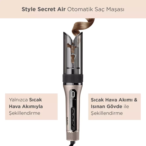 Babyliss C6688E Style Secret Air Auto-Curl Teknolojili Sıcak Hava İle Bukle Yapan Otomatik Saç Maşası Metalik