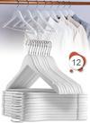 12 Adet - Ahşap Görünümlü Plastik Kıyafet Ve Elbise Askısı Beyaz