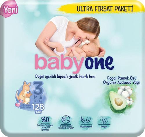 Babyone Yeni Bebek Bezi 3 Beden Midi Ultra Fırsat Paketi 128 Adet