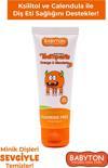 Canlı ve Ferah Bir Gülümseme Babyton diş macununun tadı taze portakal bahçeleri ve ferah mandalina ağaçlarından esinlenerek oluşturulmuştur. Formülündeki doğal özler, çocuğunuzun dişlerini nazikçe temizler ve korur. Aynı zamanda portakal ve mandalinanın canlandırıcı kokusu, dişlerini fırçalamak için çocuklarınıza ilham verir. Babyton portakal ve mandalina aromalı diş macunu, çocukların diş fırçalama alışkanlığını eğlenceli ve keyifli hale getirirken, onların gülüşlerini parlak ve sağlıklı tutmaya yardımcı olur.