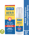 Yeni doğandan itibaren güvenle kullanılabilen Babyton Hero Losyon Sprey, morarma, hafif yanık, çizik, sinek ve böcek ısırığı, kuru cilt, tahriş gibi cilt sorunlarında doğal bir yatıştırıcı olarak öne çıkar.