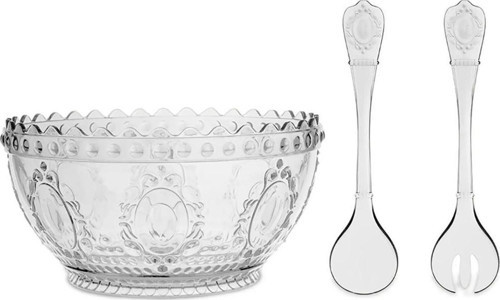 Baci Milano Baroque Rock Salata Kase ve Servis Seti Şeffaf, sofranızı zarif ve göz alıcı bir şekilde tamamlar. Hem günlük yemeklerde hem de özel davetlerde kullanabileceğiniz bu set, yemek sunumlarınızı daha özel hale getirir. Şeffaf tasarımı ile içerikleri sergilerken, zarif desenleri ile sofranıza estetik bir dokunuş ekler. Baci Milano Baroque Rock Salata Kase ve Servis Seti, salata, meyve, atıştırmalıklar veya diğer yemekleri sunmak için idealdir. Özel günlerde veya davetlerde, misafirlerinize yemekleri zarif bir şekilde sunabilirsiniz.