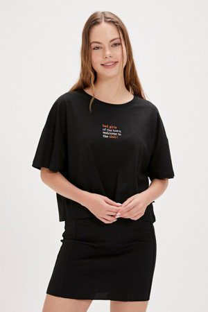 Town Siyah Baskılı Kadın Tişört