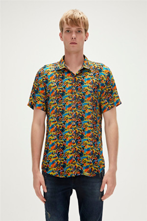 Bi-Face Shirt Sarı Kısa Kollu Baskılı Erkek Gömlek