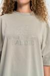 Bisiklet yaka, düşük omuzlu oversize t-shirt.